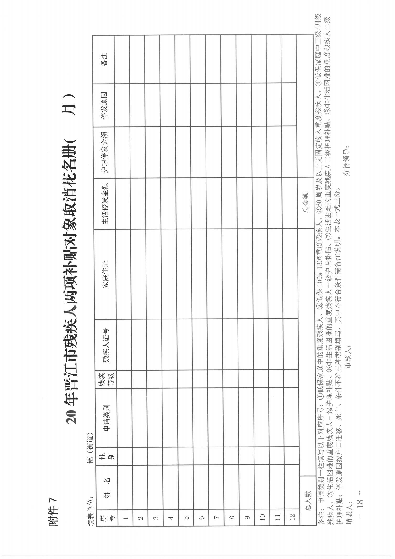 7.晋江市困难残疾人两项补贴对象取消花名册(月)