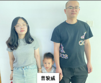 曾骏威,性别:男,大致年龄3 岁,血型:O型,2022年4月28日发现被遗弃在福建省泉州市晋江市罗山街道苏内北路76号门口,现暂由捡拾抚养人曾庆雨和李燕燕自行抚养。