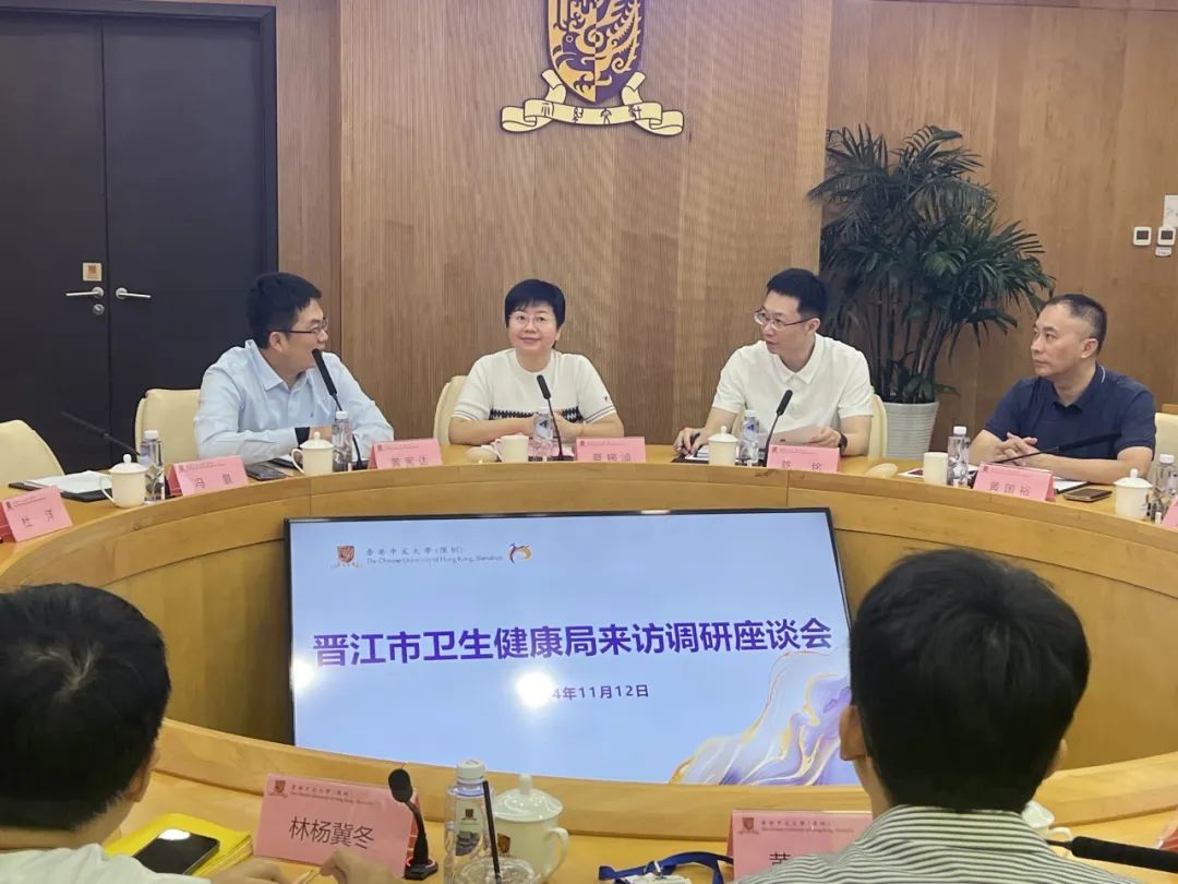 及医院科研平台、生物医药相关研究工作水平,11月12至13日,晋江市卫健局局长蔡婉浈、晋江市医院(上海六院福建医院)院长陈铭带领市卫健局、医院管理干部一行8人,前往香港中文大学(深圳)医学院、深圳市中西医结合医院考察,学习先进经验、理念,交流合作相关细节。