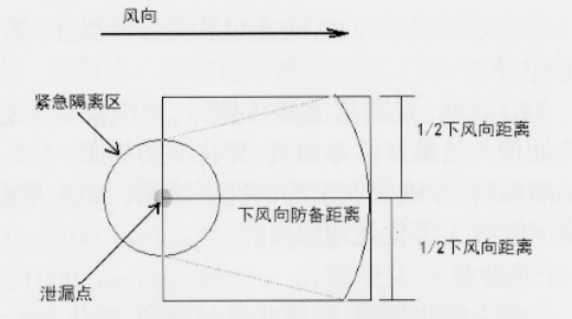 图F1 紧急隔离区与下风向防备距离示意图