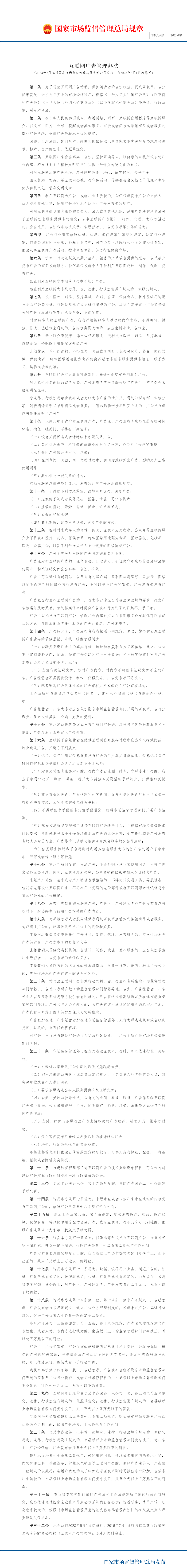 互联网广告管理办法(2023年2月25日国家市场监督管理总局令第72号公布 自2023年5月1日起施行)