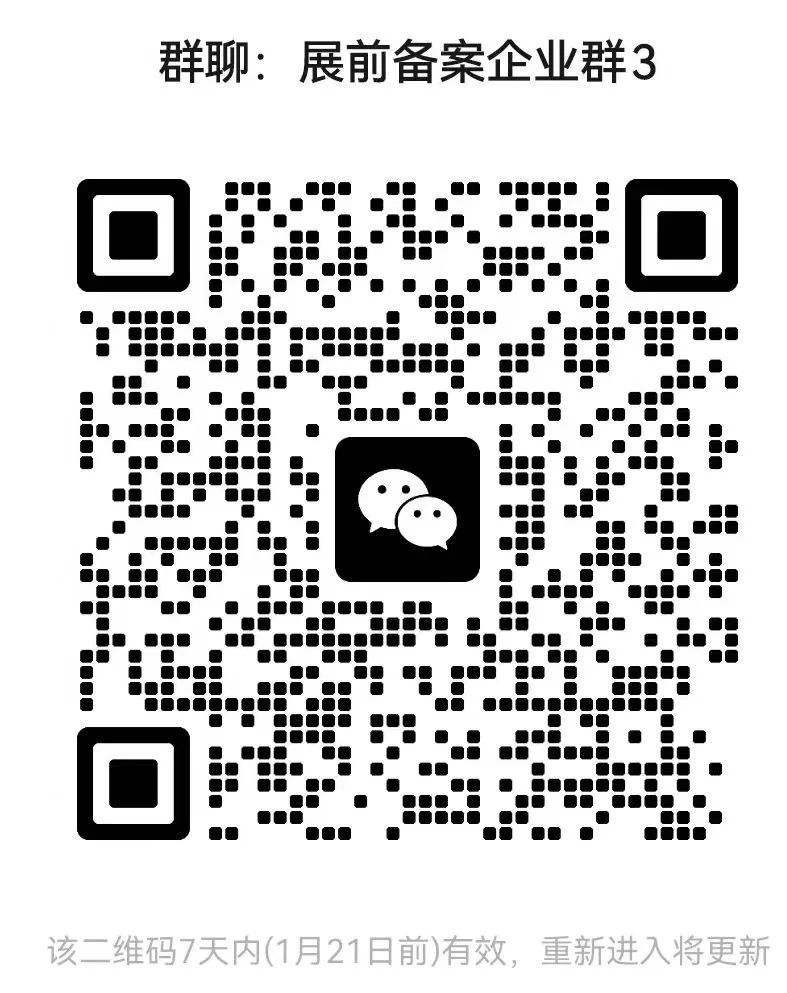 请参加2025年“晋品出海”境外重点展会(附件1)的企业于参展前将参展报备资料扫描发送至商务局外贸科电子邮箱[email protected]备案(邮件名称请以公司名称+展会名称+展前备案命名),并扫描下方二维码入群(如已在展前备案企业群1群、2群的无需重复入群)。