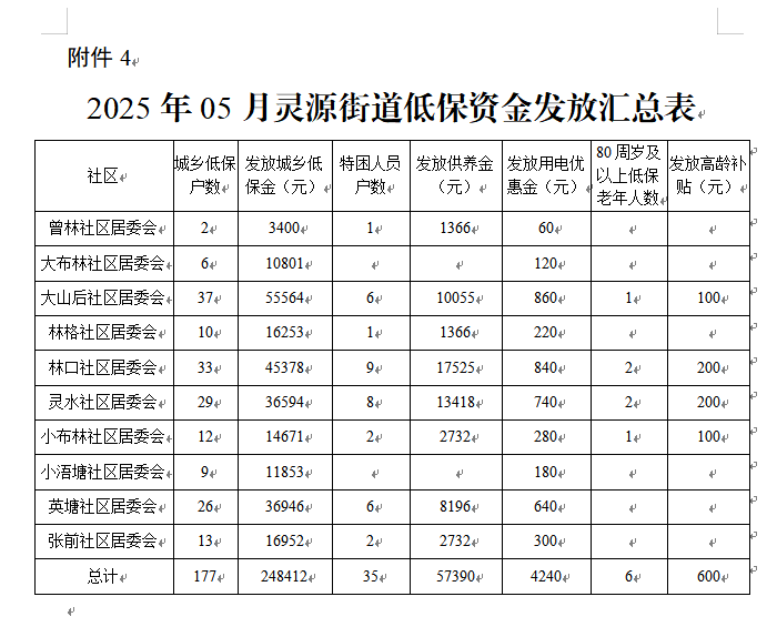 4.2025年05月灵源街道低保资金发放汇总表