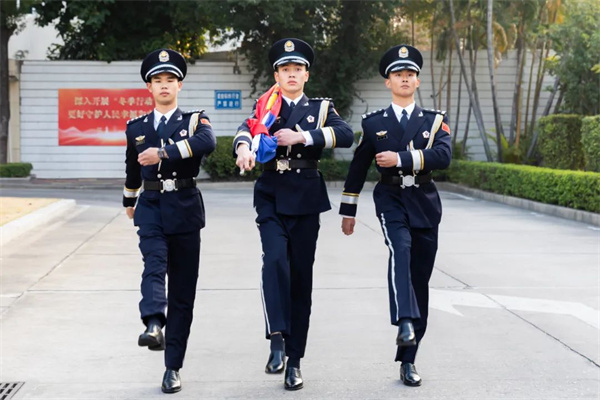 上午8时,升警旗仪式正式开始。民警代表身着警礼服、头戴警礼帽,整齐列队、激情满怀。仪仗队员精神抖擞,护卫中国人民警察警旗,迈着整齐划一、铿锵有力的步伐行进到升旗台。“向中国人民警察警旗敬礼!”随着号令,伴随着嘹亮的中国人民警察警歌,警旗冉冉升起。全体民警肃立注目,向警旗致以崇高的敬礼。