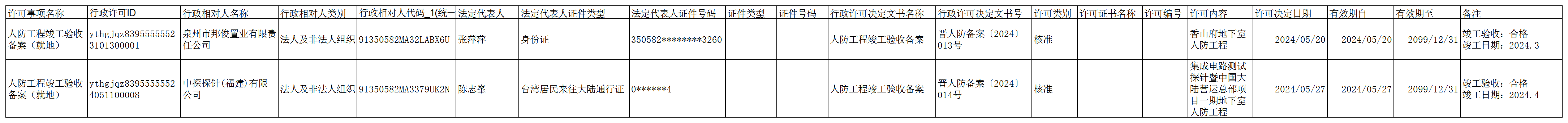 晋江人防2024年5月竣工备案信息公示(2)